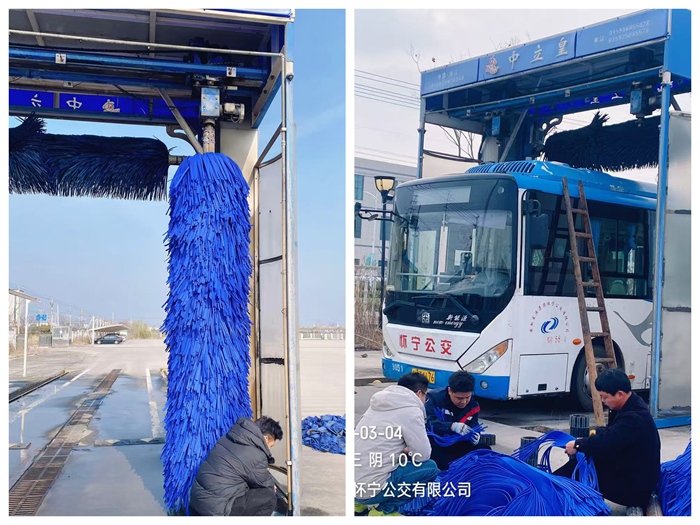 2026年3月4日,懷寧公交停保場內呈現(xiàn)出一派繁忙而有序的景象,公司技術人員與洗車機廠家售后團隊緊密合作,成功完成了大型洗車機轉軸毛刷的全面更新工作,為文明衛(wèi)生城市建設再添新動力。